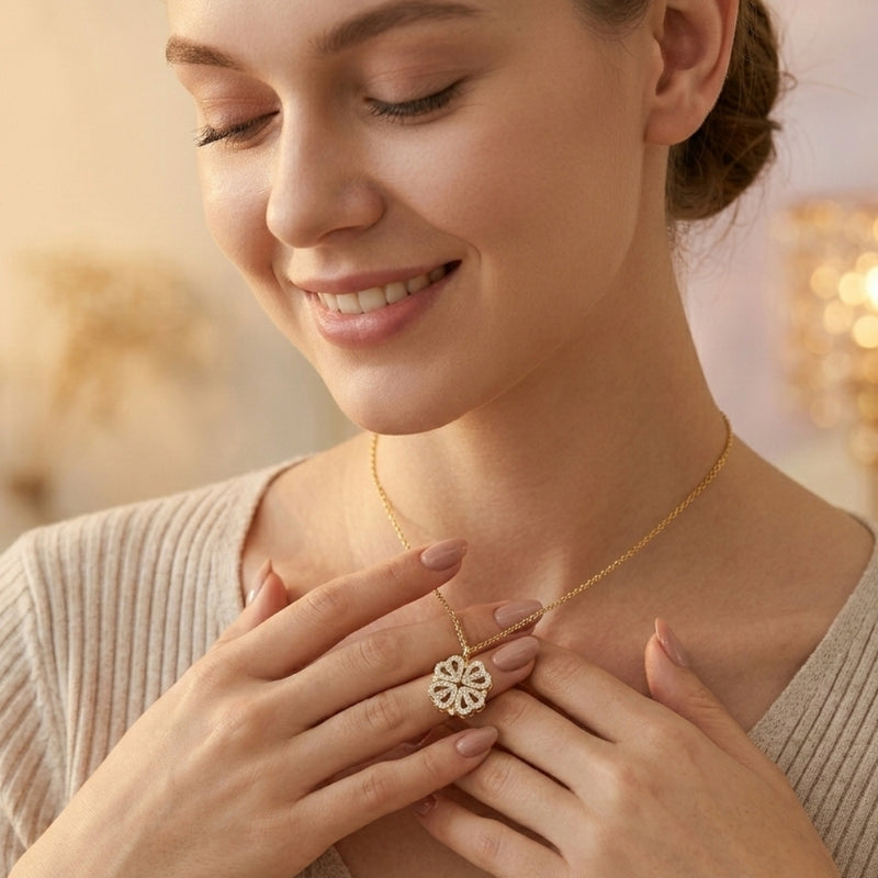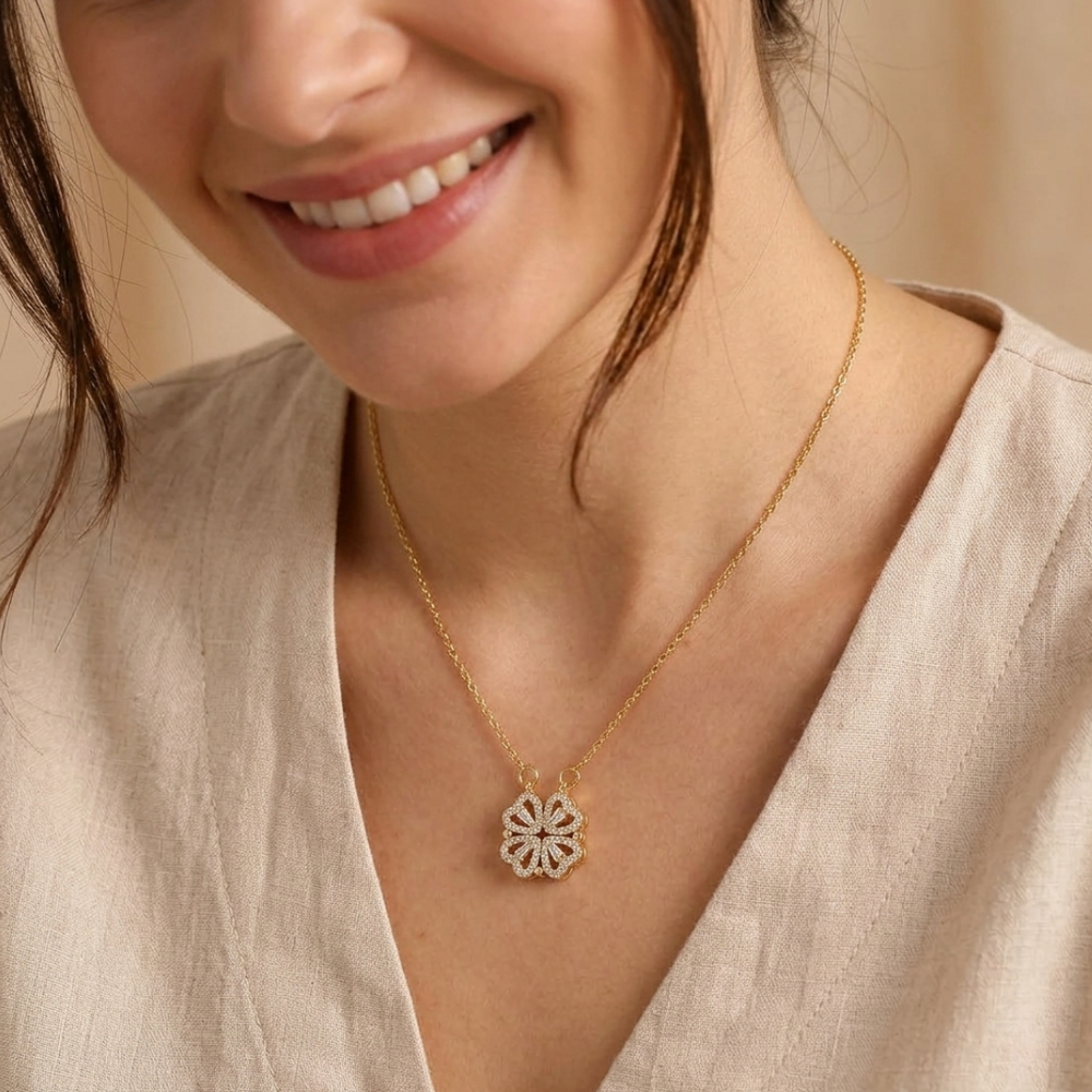 More than a simple accessory, this clover and heart inspired necklace represents love, luck, and inner positivity. Designed to complement your everyday style, it blends meaningful symbolism with timeless elegance.